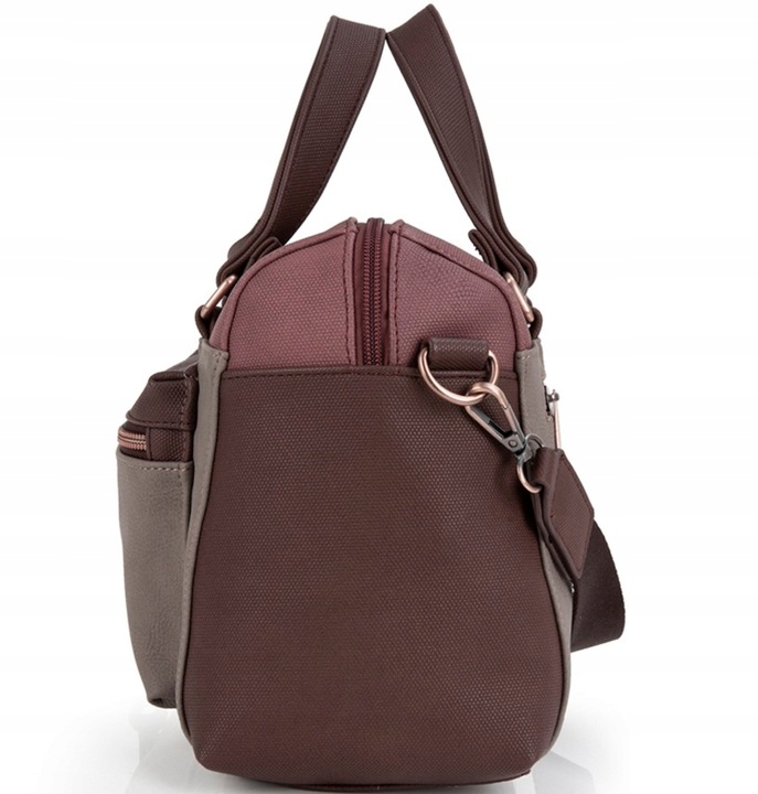 lekka torebka kuferek Gabol Dora posiada 1 komorę zamykana zamkiem błyskawicznym wyposażona jest w kieszonkę zamykaną suwakiem oraz 2 dodatkowe kieszenie zewnętrzne zamykane zamkiem błyskawicznym; do przenoszenia służą 2 uchwyty i szeroki odpinany pasek.