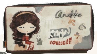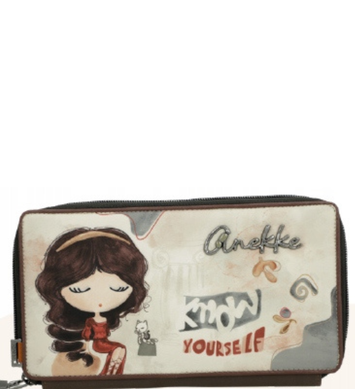 Duży portfel- portmonetka Anekke Muse, zamykany ozdobnym zamkiem błyskawicznym, podzielony jest na dwie części. Z jednej strony znajduje się płaska 1 kieszeń uniwersalna i 1 obszerna kieszeń zamykana zamkiem błyskawicznym. Druga strona to 4 płaskie, szerokie kieszenie uniwersalne i 8 małych kieszonek z przeznaczeniem na karty płatnicze, lojalnościowe etc. Na środku portfela Anekke Muse zamocowany jest praktyczny uchwyt na długopis. Portfel Anekke Muse wyposażony jest w obszerną, podwójną kieszeń na banknoty.