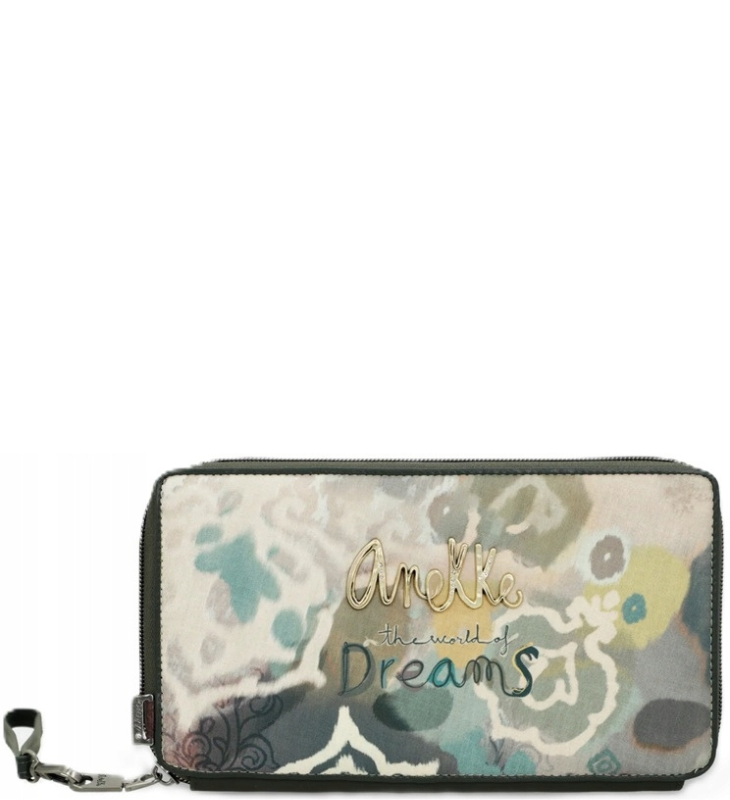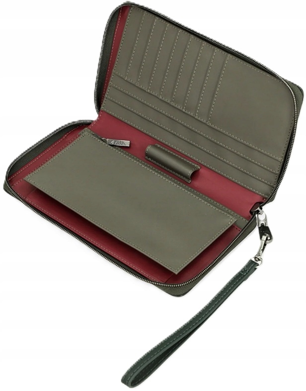 Duży portfel- portmonetka Anekke Real, zamykany ozdobnym zamkiem błyskawicznym, podzielony jest na dwie części. Z jednej strony znajduje się płaska 1 kieszeń uniwersalna i 1 obszerna kieszeń zamykana zamkiem błyskawicznym. Druga strona to 4 płaskie, szerokie kieszenie uniwersalne i 8 małych kieszonek z przeznaczeniem na karty płatnicze, lojalnościowe etc. Na środku portfela Anekke Real zamocowany jest praktyczny uchwyt na długopis. Portfel Anekke Real wyposażony jest w obszerną, podwójną kieszeń na banknoty.