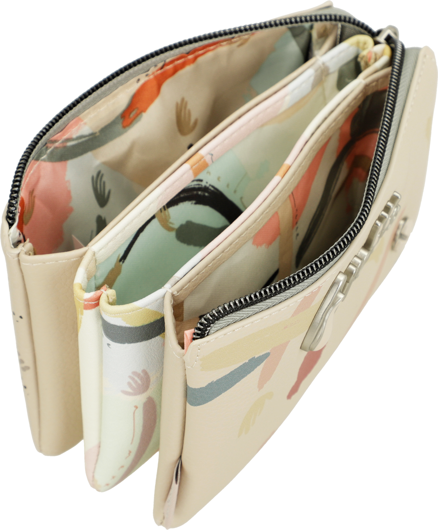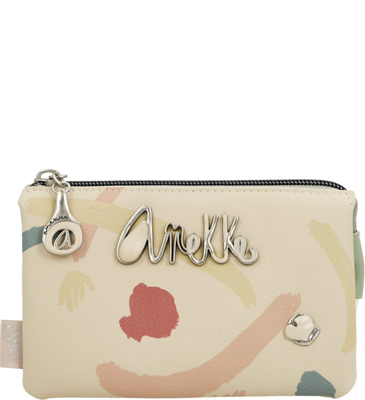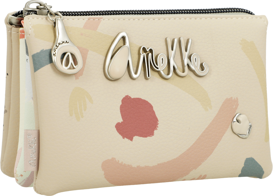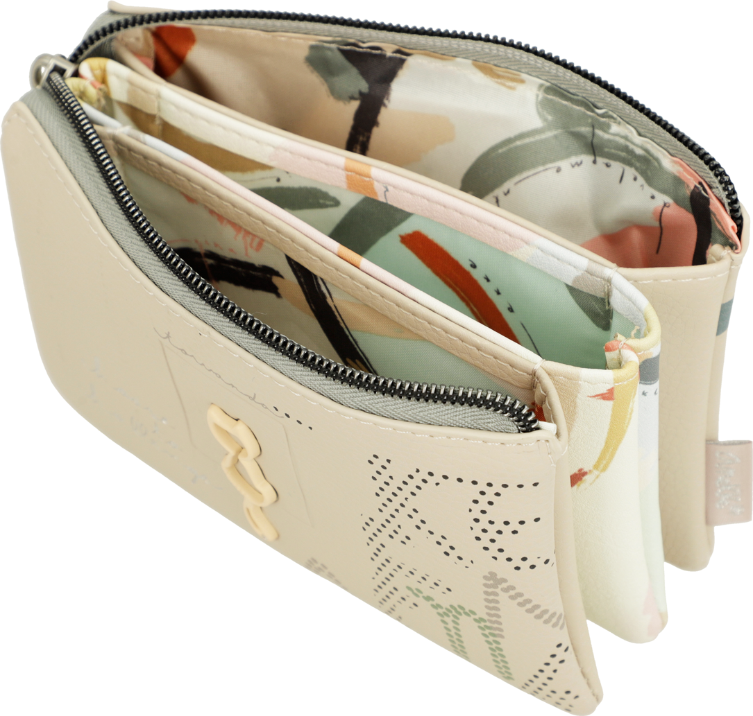 Praktyczne etui, lub portmonetka z motywem serii Anekke Memories Original, ma trzy oddzielne przegrody, które można zamknąć na zamek błyskawiczny, aby pomieścić wszystkie Twoje drobiazgi. Pomiędzy głównymi przegródkami znajdują się dodatkowe dwie kieszonki.