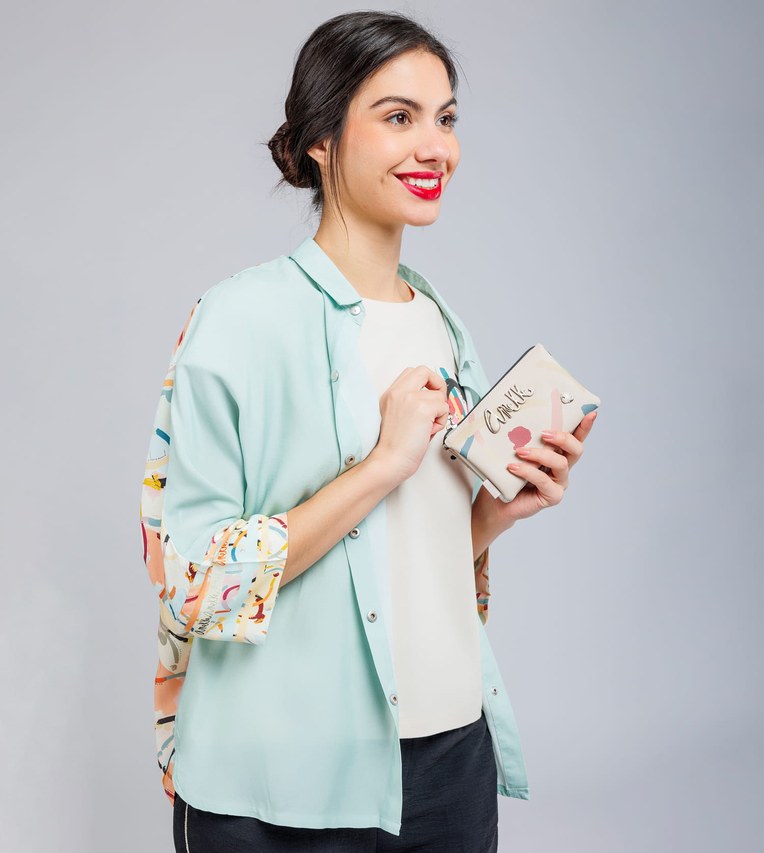 Anekke to Hiszpańska marka torebek, plecaków i innego rodzaju galanterii. Uwagę w ich produktach przyciągają takie ozdoby jak biżuteryjne dodatki, naszywki, bajkowe grafiki, delikatne przydymione kolory oraz nadzwyczajna solidność oraz jakość wykonania każdego produktu.