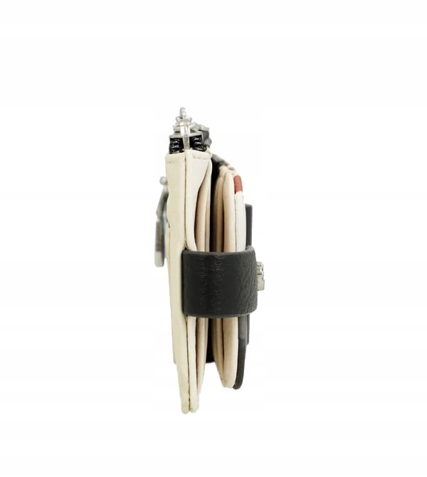 Mały portfelik Alma (portmonetka, etui na karty) zamykany jest na zatrzask. Dzięki takiemu rozwiązaniu mamy wygodny dostęp do wnetrza. Dwie kieszonki uniwersalne zamykane są suwakami i przeznaczone na bilon, banknoty i inne drobiazgi. Wnętrze etui Anekke Alma obszyte jest wytrzymałą tkaniną kaletniczą z kolorowym nadrukiem nawiązującym do symboliki serii.