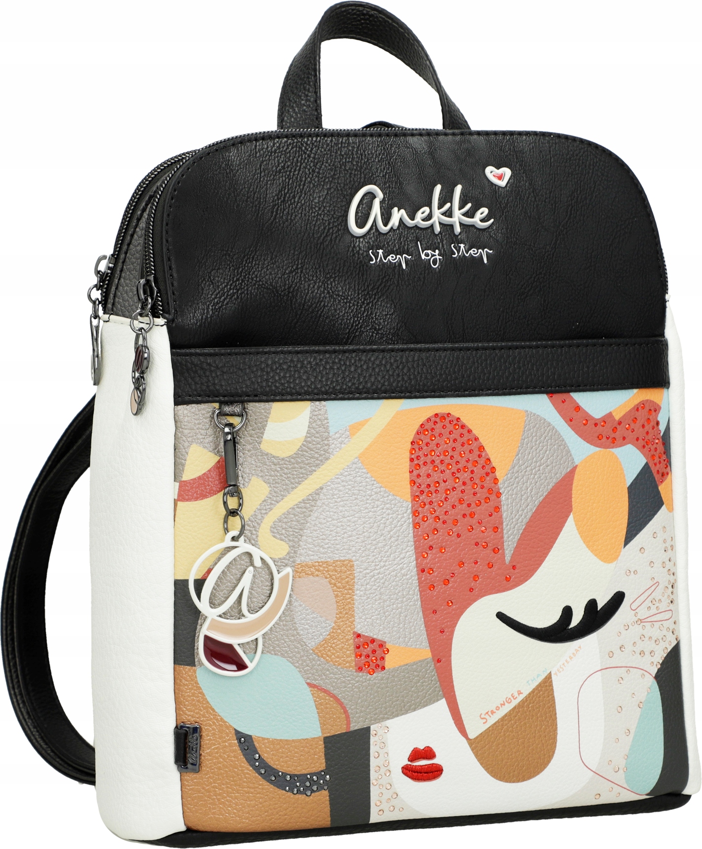 Anekke to Hiszpańska marka torebek, plecaków i innego rodzaju galanterii. Uwagę w ich produktach przyciągają takie ozdoby jak biżuteryjne dodatki, naszywki, bajkowe grafiki, delikatne przydymione kolory oraz nadzwyczajna solidność oraz jakość wykonania każdego produktu.