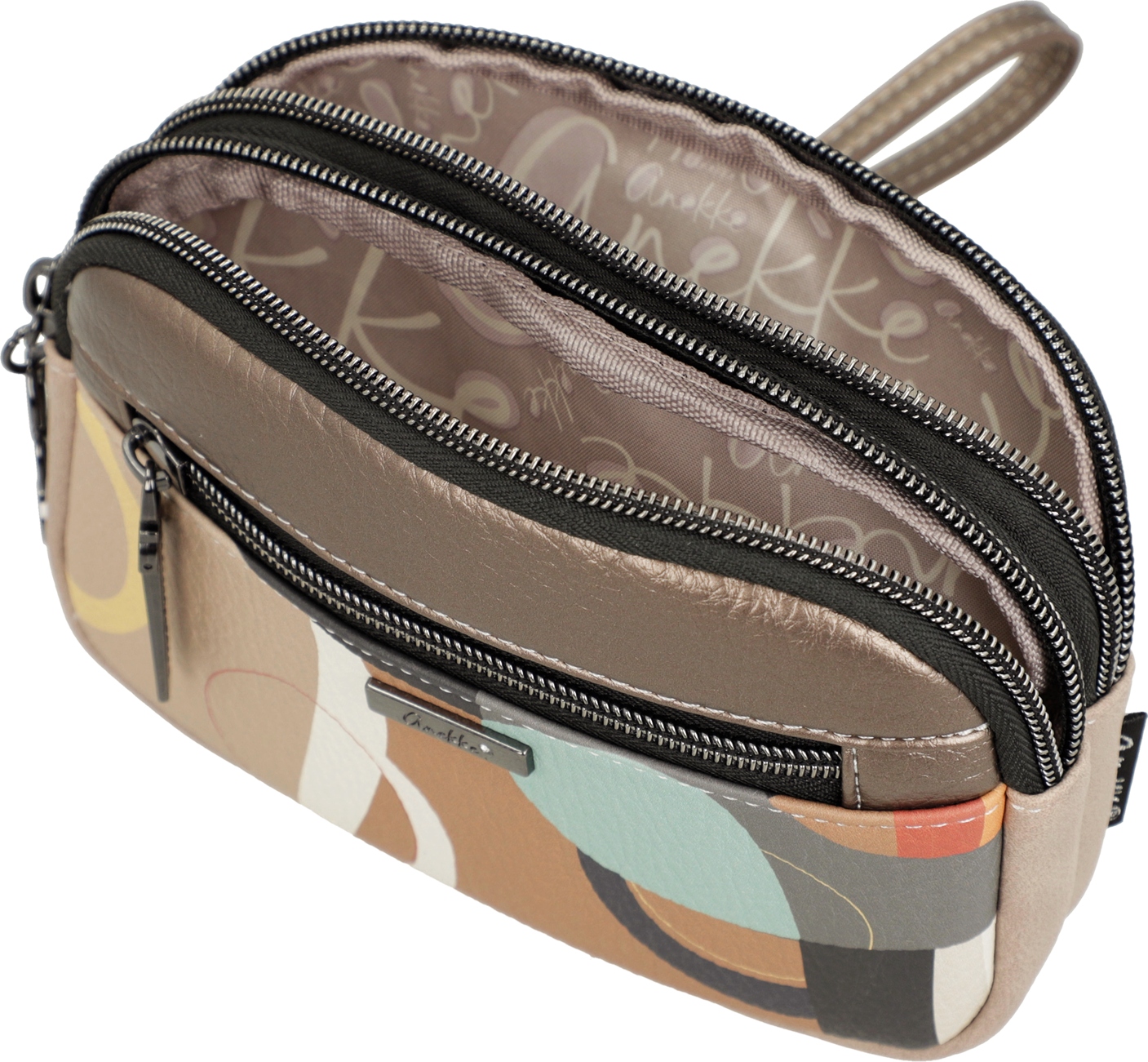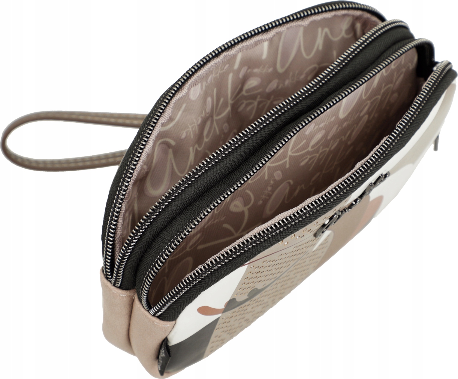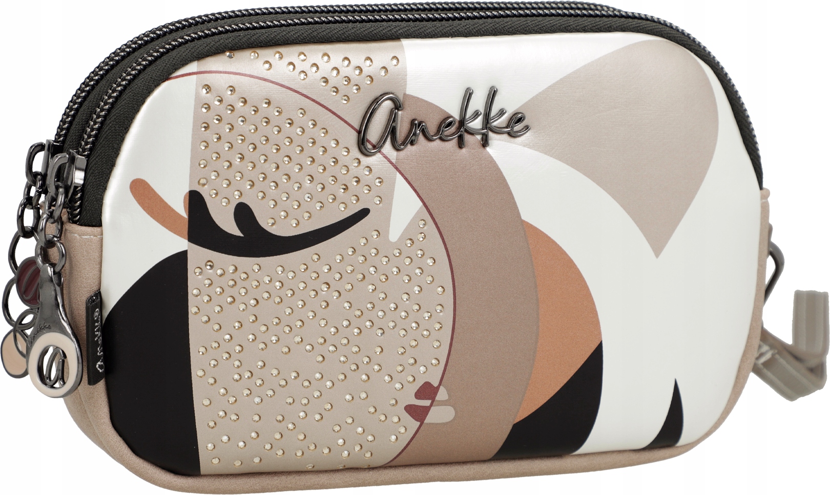 Praktyczne etui, lub portmonetka lub mini kosmetyczka z motywem Anekke Eikon, ma dwie oddzielne przegrody, które można zamknąć na zamek błyskawiczny, aby pomieścić wszystkie Twoje drobiazgi.