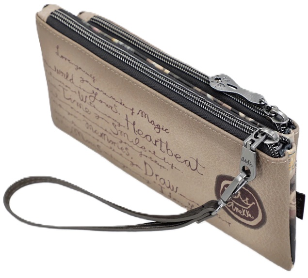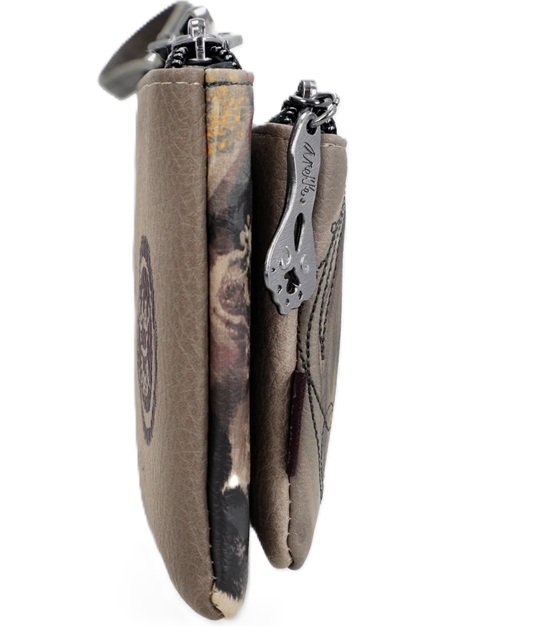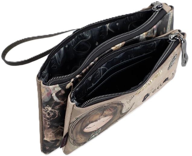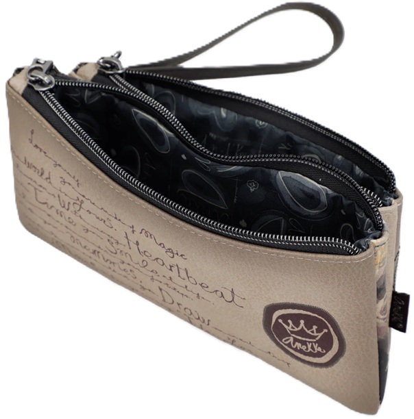 Mały portfelik Anekke Real (portmonetka, etui) Obie kieszonki uniwersalne zamykane suwakami . Wnętrze obszyte jest wytrzymałą tkaniną kaletniczą z kolorowym nadrukiem nawiązującym do serii Anekke Real