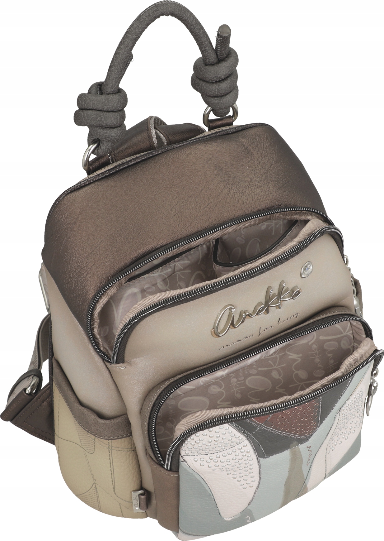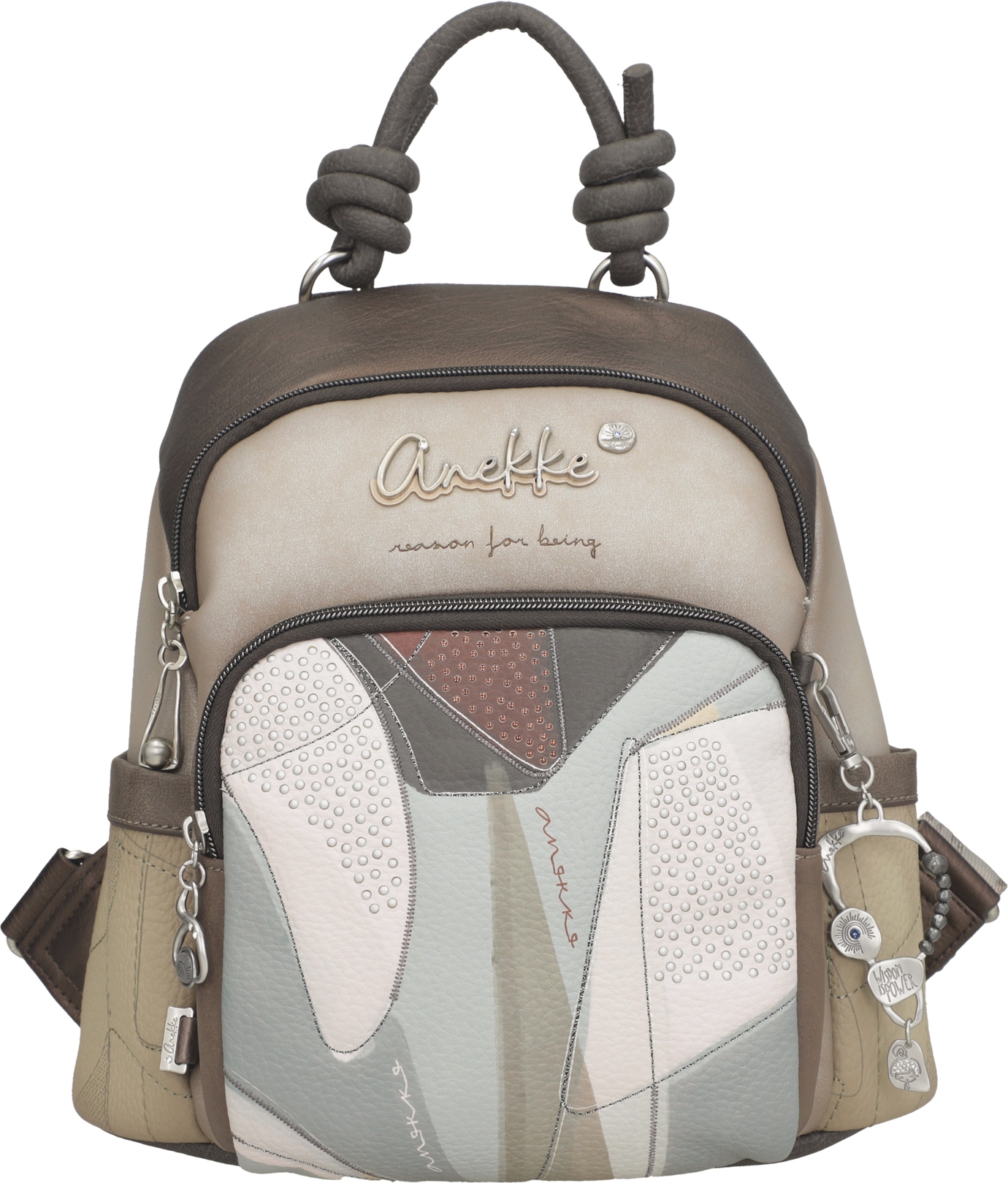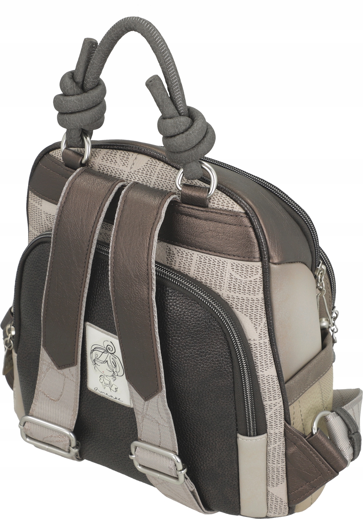 Anekke to Hiszpańska marka torebek, plecaków i innego rodzaju galanterii. Uwagę w ich produktach przyciągają takie ozdoby jak biżuteryjne dodatki, naszywki, bajkowe grafiki, delikatne przydymione kolory oraz nadzwyczajna solidność oraz jakość wykonania każdego produktu.