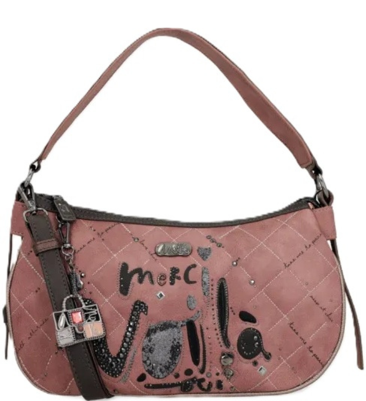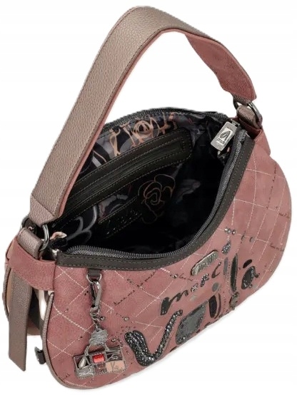 Półokrągła listonoszka Anekke jest oryginalnym produktem hiszpańskiej marki Anekke. Główna komora zamykana jest ozdobnym zamkiem błyskawicznym, wnętrze wykończone jest tkaniną kaletniczą- podszewką z kolorowym nadrukiem dopasowanym do do tematyki serii Anekke Parisian. W środku umieszczono dwie kieszenie- kieszonkę zamykaną na suwak i drugą- otwartą, idealną na telefon lub klucze. Na zewnatrz z tyłu torebki Anekke znajduje się bezpieczna, pozioma kieszeń również zamykana zamkiem błyskawicznym. Torebka Anekke Parisian wyposażona jest w dwa paski. Jeden z nich to mocowany na stałe stałe szeroki pasek, drugi to regulowany wąski paseczek. Torebka Anekke Parisian ozdobiona jest grafikami, haftami, naszywkami i dżetami nawiązującymi do linii Anekke Parisian.