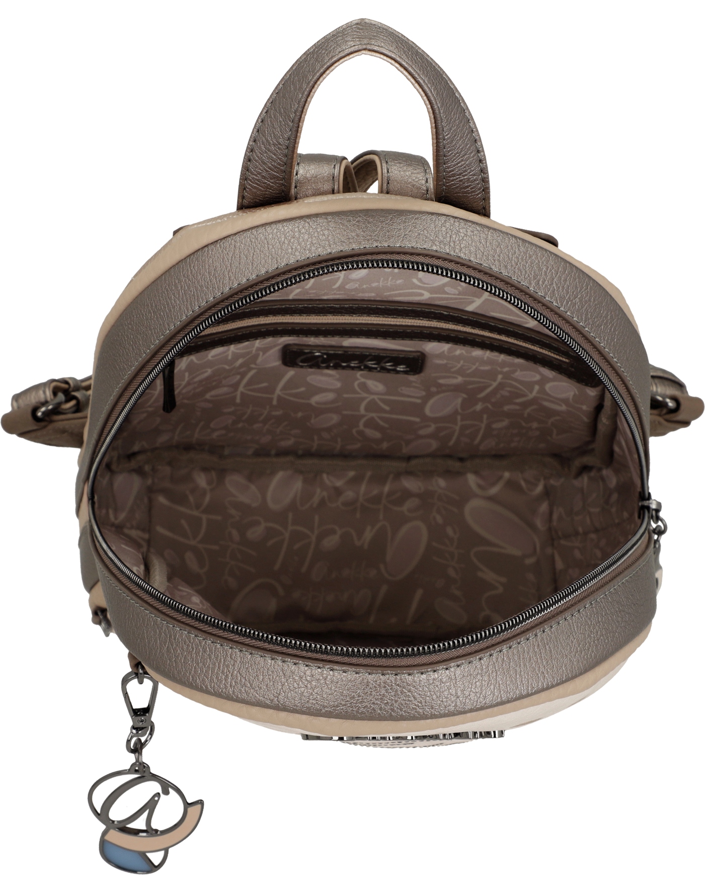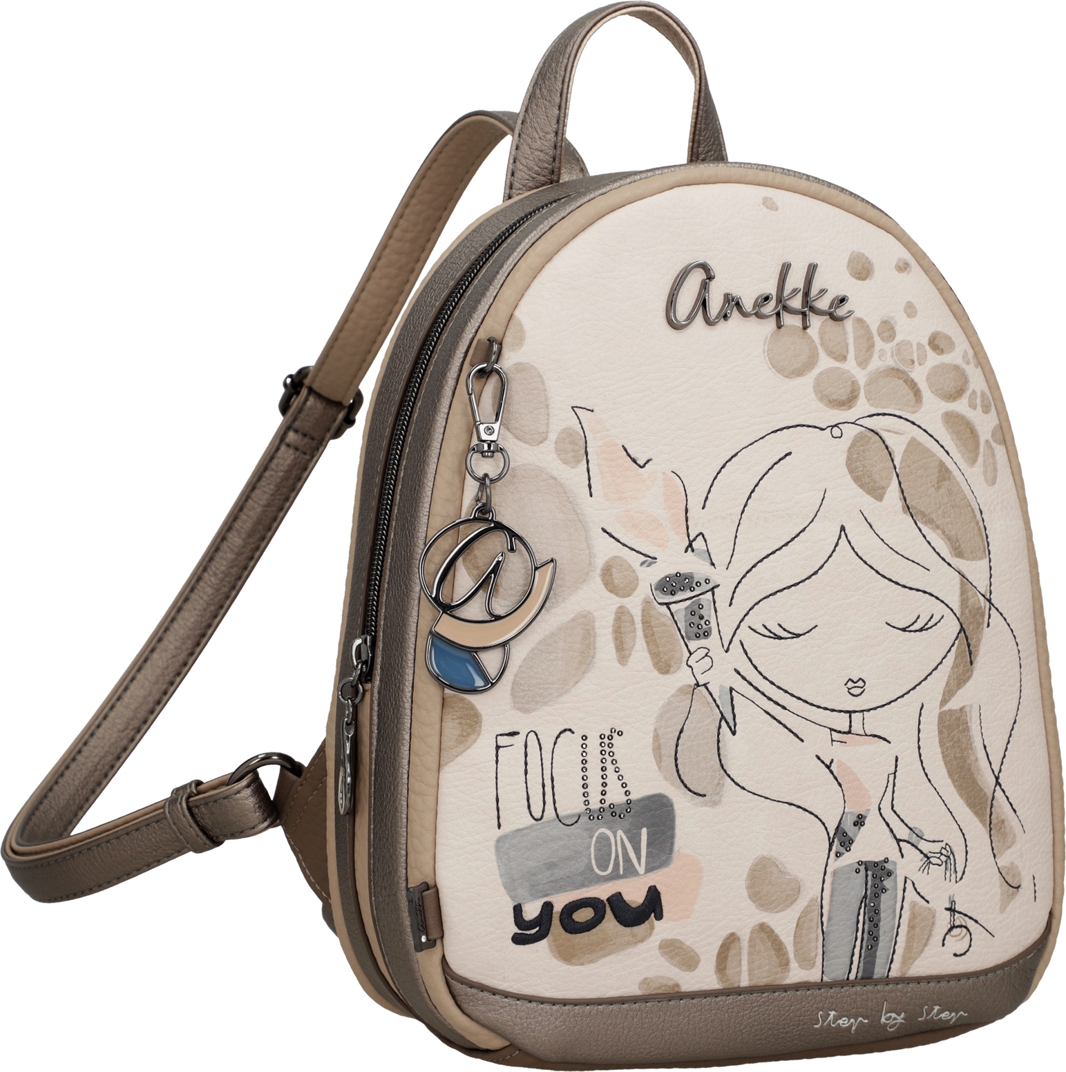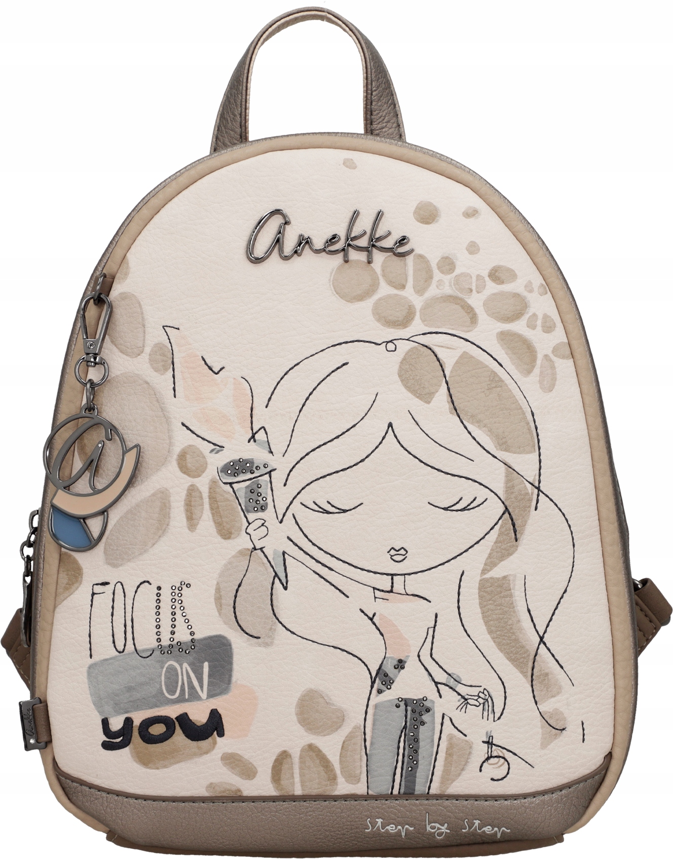 Anekke to Hiszpańska marka torebek, plecaków i innego rodzaju galanterii. Uwagę w ich produktach przyciągają takie ozdoby jak biżuteryjne dodatki, naszywki, bajkowe grafiki, delikatne przydymione kolory oraz nadzwyczajna solidność oraz jakość wykonania każdego produktu.