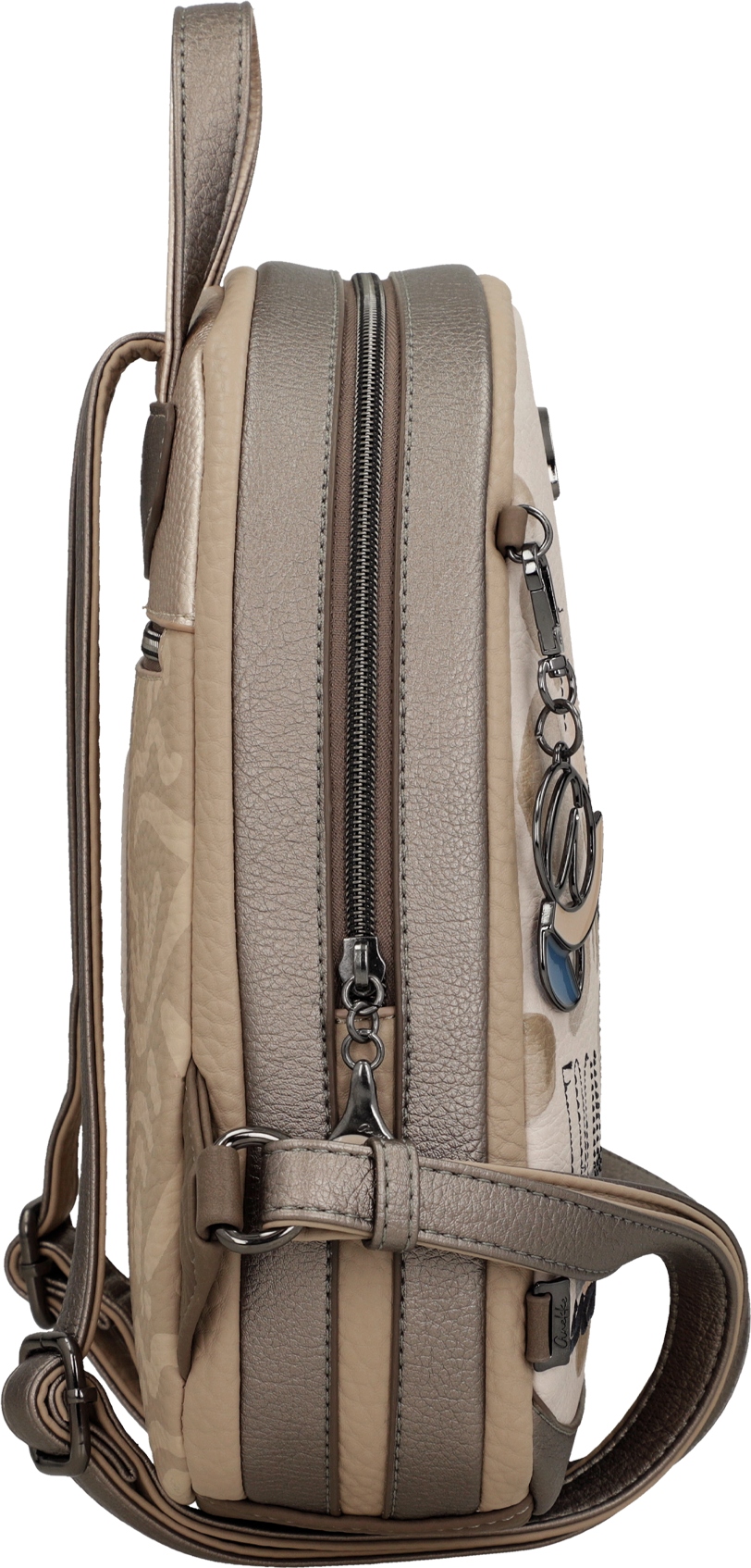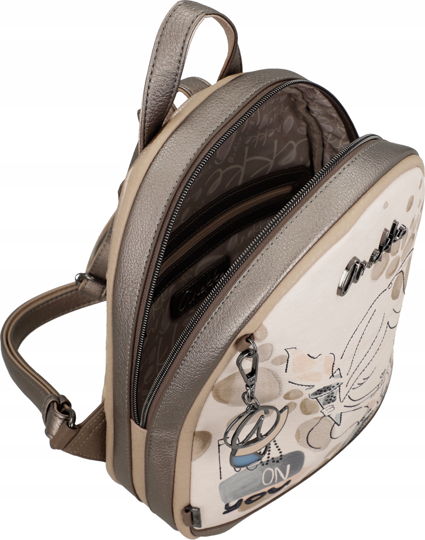 Sporej wielkości, jednokomorowy plecak miejski Anekke Olympia jest bogato zdobiony naszywkami, haftami i dżetami, każdy szczegół jest perfekcyjnie dopracowany. Plecak Anekke Olympia mieści format A5 (mniejszy) i może być używany na co dzień, do pracy, na popołudniowe spotkania z przyjaciółmi. Plecak Olympia zamykany jest zamkiem błyskawicznym. Wewnątrz znajdziemy dwie kieszenie- otwartą kieszonkę na telefon chusteczki czy klucze i jedną zamykana suwakiem na dokumenty lub t.p. Wnętrze torebki obszyte jest wytrzymałą tkaniną kaletniczą z kolorowym nadrukiem nawiązującym do serii Anekke Olympia. Na zewnątrz od strony pleców wszyto zamykaną suwakiem, obszerną poziomą kieszeń. Do plecaka dołączony jest ozdobny odpinany brelok. Plecak Anekke Olympia zapakowany jest w flizelinowy worek z nadrukiem Anekke.