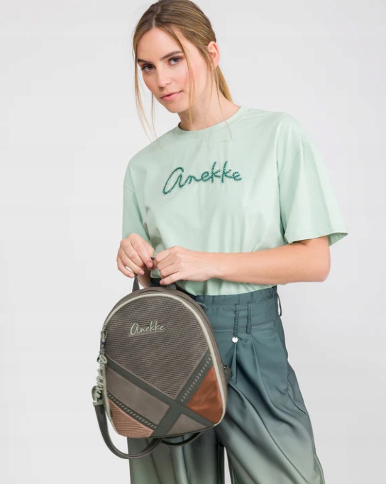 Anekke to Hiszpańska marka torebek, plecaków i innego rodzaju galanterii. Uwagę w ich produktach przyciągają takie ozdoby jak biżuteryjne dodatki, naszywki, bajkowe grafiki, delikatne przydymione kolory oraz nadzwyczajna solidność oraz jakość wykonania każdego produktu.