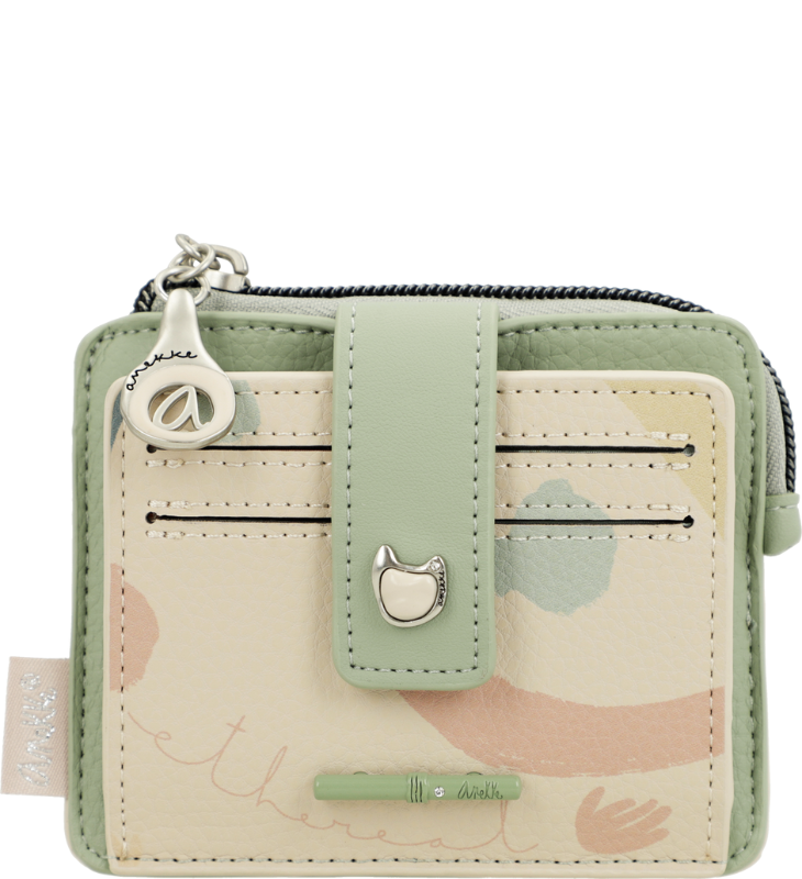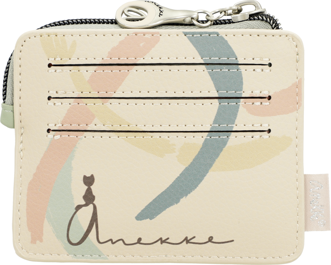 Mały miękki portfelik- etui Anekke Alma Original kieszonkę na bilon zamykana na suwak. Portfel Anekke Alma Original ma 9 przegródek- kieszonek na karty płatnicze/ lojalnościowe lub dokumenty typu dowód osobisty lub prawo jazdy. Wnętrze obszyte jest wytrzymałą tkaniną kaletniczą z kolorowym nadrukiem nawiązującym do serii Anekke Alma Original.