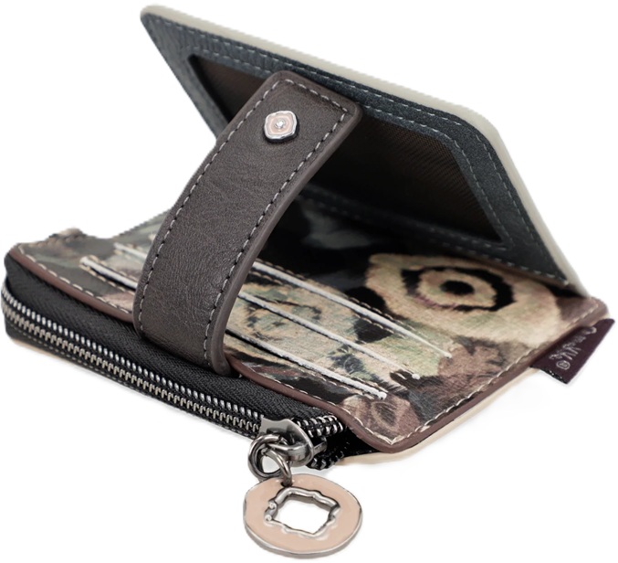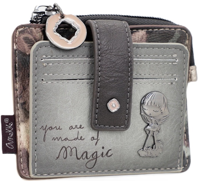 Mały miękki portfelik- etui Anekke Real Manifesto kieszonkę na bilon zamykana na suwak. Portfel Anekke Real Manifesto ma 9 przegródek- kieszonek na karty płatnicze/ lojalnościowe lub dokumenty typu dowód osobisty lub prawo jazdy. Wnętrze obszyte jest wytrzymałą tkaniną kaletniczą z kolorowym nadrukiem nawiązującym do serii Anekke Real Manifesto.