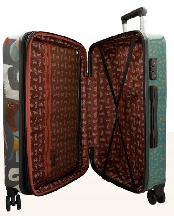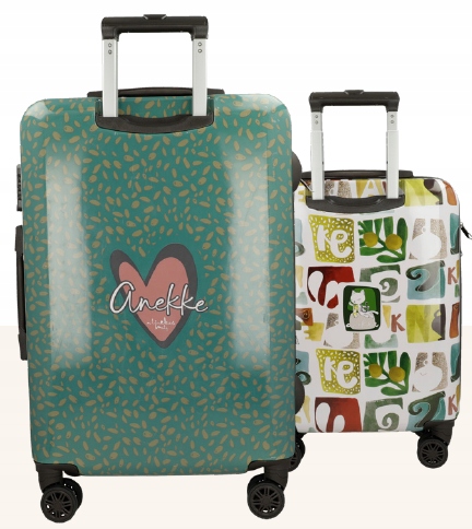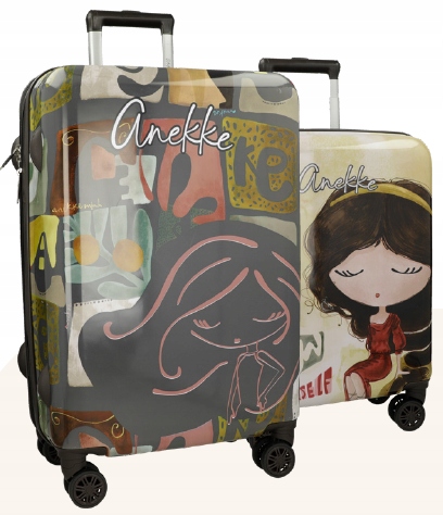 Obie walizki zdobi subtelna grafika z wizerunkiem Anekke otulonej delikatnymi barwami i szkicowymi zdobieniami. To zestaw, który zamienia każdą podróż w pełną wdzięku przygodę z nutą historii.
