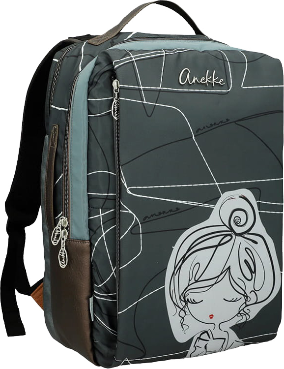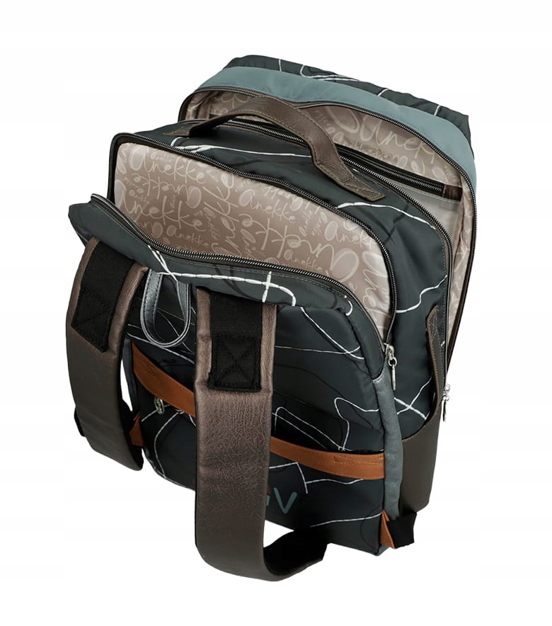 Lekki podręczny plecak turystyczny bagaż Anekke Sophia składa się z 2 komór zamykanych z zamkiem błyskawicznym jedna z tych komór przeznaczona jest do przenoszenia laptopa. Plecak posiada 2 regulowane szelki oraz 3 uchwyty: górny i boczny do przenoszenia w ręku oraz uchwyt między szelkami do zawieszenia na wieszaku. Plecak Anekke wyposażony jest również w pas bagażowy służący do zamocowania na stelażu walizki. Bogato rozbudowany system kieszonek i kieszeni zamykanych oraz otwartych pozwala na doskonałą organizację przewożonego bagażu. Plecak turystyczny Anekke może pełnić rolę bagażu podręcznego.