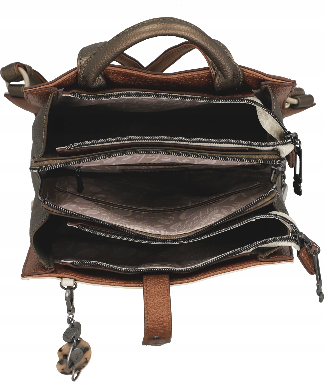 - Kieszonka bez zapięcia i kieszonka na zamek w drugiej komorze