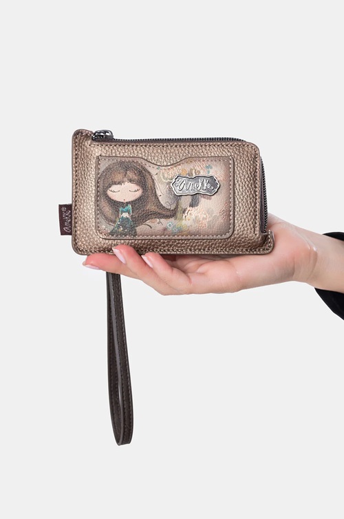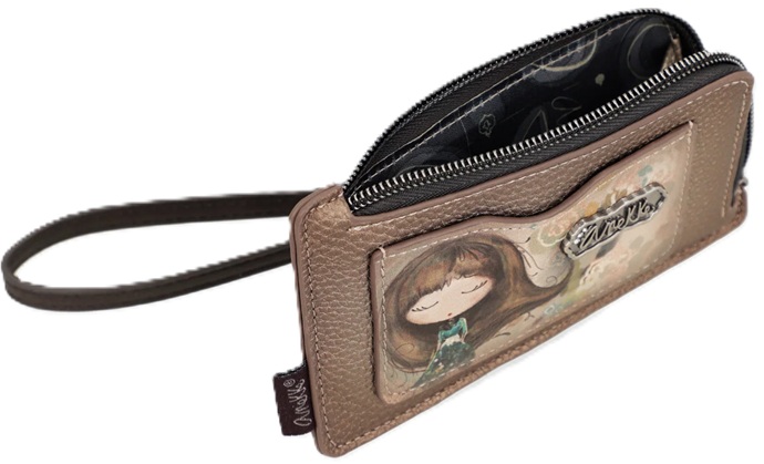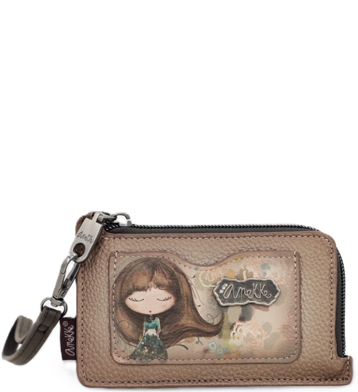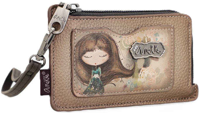 Komora główna portfelika Anekke Real zamykana jest na zamek błyskawiczny. Wnętrze jest poszerzonym miejscem na bilon lub banknoty; w zewnętrznej części mieszczą się 4 kieszonki na karty oraz dodatkowa płaska kieszonka z przodu portfela. Do portfelika dołączony jest paseczek który można odpiąć.