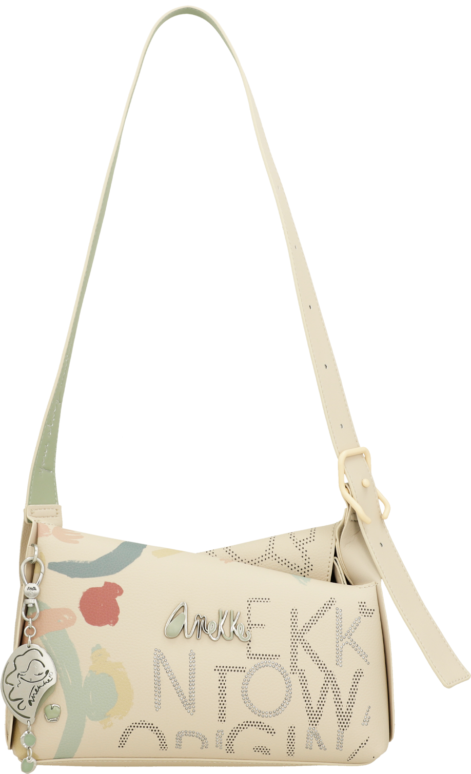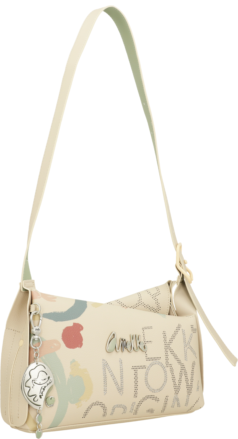 Anekke to Hiszpańska marka torebek, plecaków i innego rodzaju galanterii. Uwagę w ich produktach przyciągają takie ozdoby jak biżuteryjne dodatki, naszywki, bajkowe grafiki, delikatne przydymione kolory oraz nadzwyczajna solidność oraz jakość wykonania każdego produktu.
