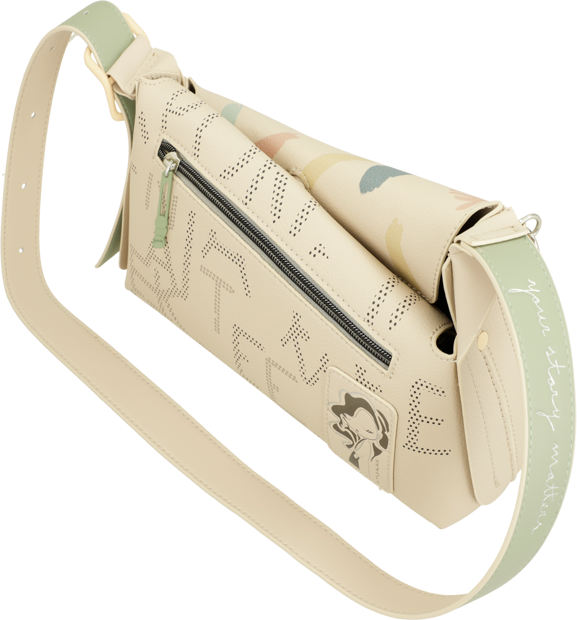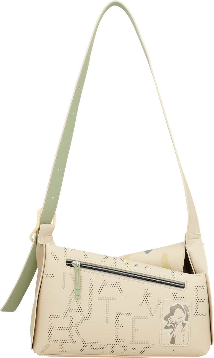 Ta damska torba na ramię jest średniej wielkości i ma zapięcie na suwak. Wnętrze jest podszyte i ma kieszenie, a także zewnętrzną kieszeń z tyłu. Jej pasek na ramię jest regulowany. Ponieważ nic nie ma większego uroku niż dusza. A Twój nowy faworyt od Anekke będzie Ci o tym przypominał każdego dnia.