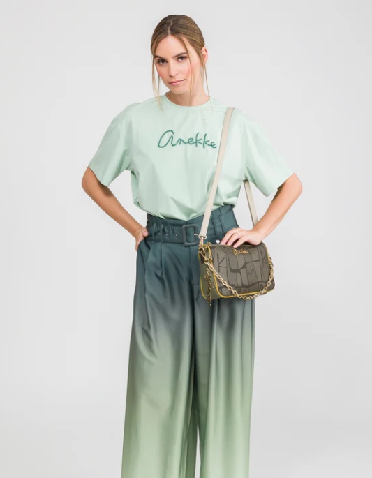 Anekke to Hiszpańska marka torebek, plecaków i innego rodzaju galanterii. Uwagę w ich produktach przyciągają takie ozdoby jak biżuteryjne dodatki, naszywki, bajkowe grafiki, delikatne przydymione kolory oraz nadzwyczajna solidność oraz jakość wykonania każdego produktu.