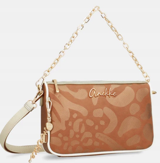 Anekke to Hiszpańska marka torebek, plecaków i innego rodzaju galanterii. Uwagę w ich produktach przyciągają takie ozdoby jak biżuteryjne dodatki, naszywki, bajkowe grafiki, delikatne przydymione kolory oraz nadzwyczajna solidność oraz jakość wykonania każdego produktu.