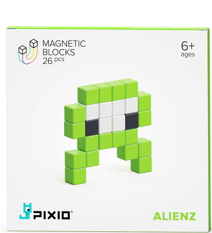 Magnetyczna konstrukcja utrzymana w stylu pixel art . Pixio to wyjątkowy zestaw konstrukcyjny, w który klocki połączone są dzięki przemyślanemu systemowi magnesów. Pixio umożliwia tworzenie prawie każdego obiektu w sposób pikselowy ! Każdy kawałek to plastikowa kostka ważąca nieco ponad 1 gram, w której znajduje się sześć magnesów.