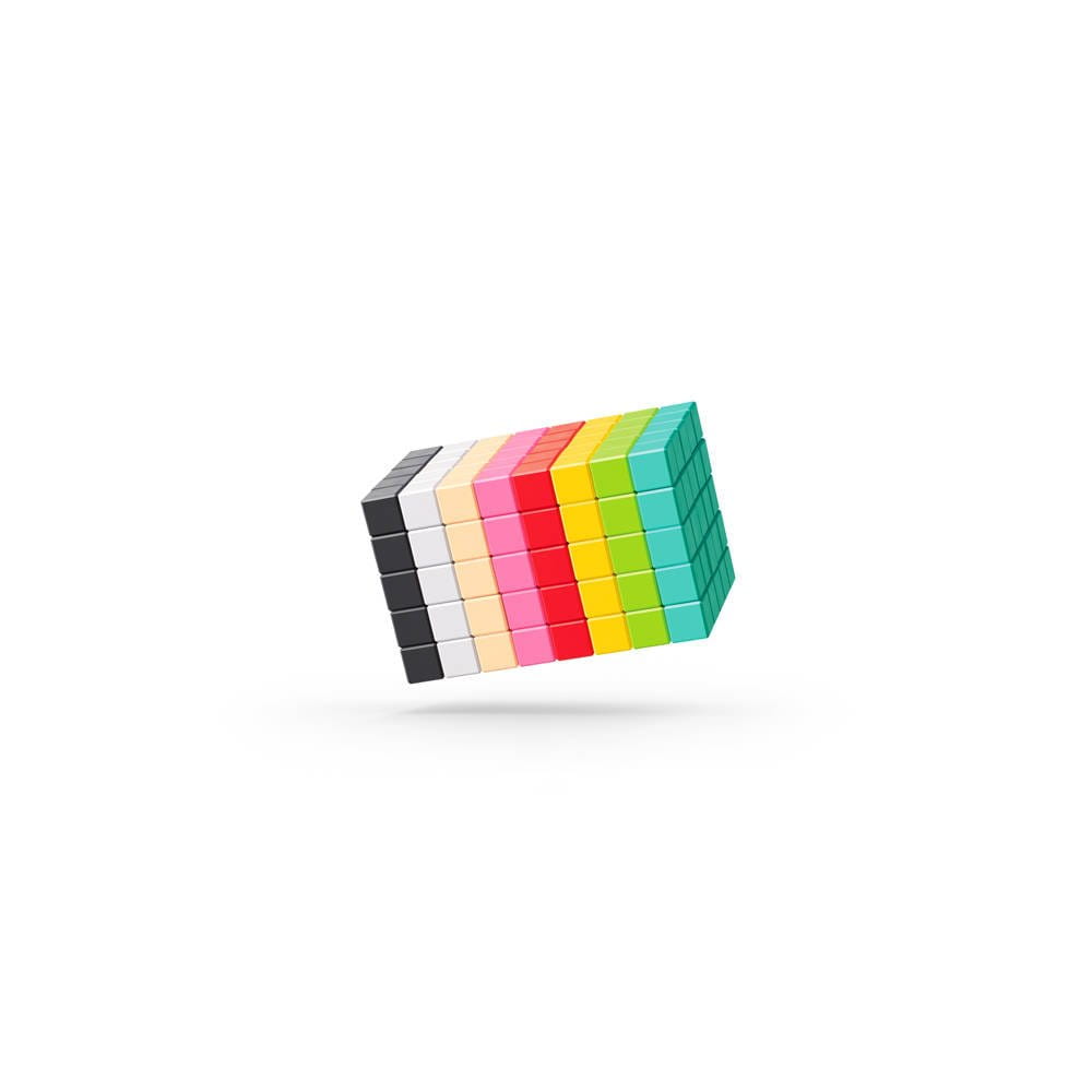 biegunowość magnesów jest ułożona w taki sposób, że kostki można łączyć ze sobą w dowolnej kolejności, z różnych stron. W PIXIO zastosowano magnesy neodymowe (Nd-Fe-B); tracą nie więcej niż 2% swojej siły magnetycznej w ciągu 50 lat. zestaw dostępny w szesnastu różnych kolorach !
