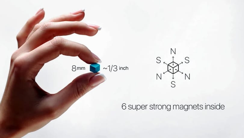 biegunowość magnesów jest ułożona w taki sposób, że kostki można łączyć ze sobą w dowolnej kolejności, z różnych stron. W PIXIO zastosowano magnesy neodymowe (Nd-Fe-B); tracą nie więcej niż 2% swojej siły magnetycznej w ciągu 50 lat. zestaw dostępny w szesnastu różnych kolorach !