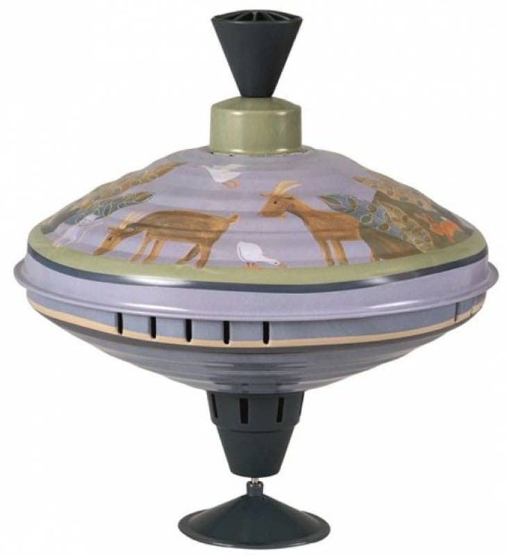 Kręcący się dookoła siebie, wydający dźwięki kolorowy przedmiot to wyjątkowo interesująca zabawka muzyczna dla maluchów.