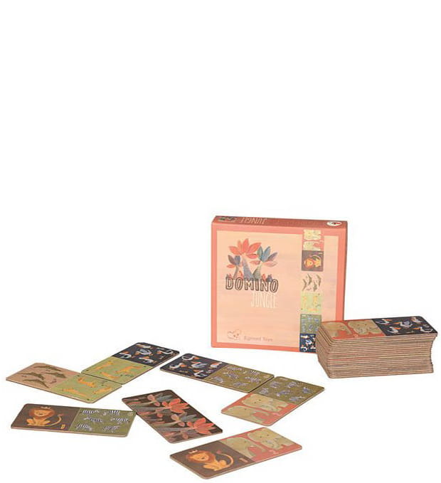 28 ilustrowanych płytek, starannie wykonanych; wygraj grę, układając jako pierwszy wszystkie swoje płytki domino.