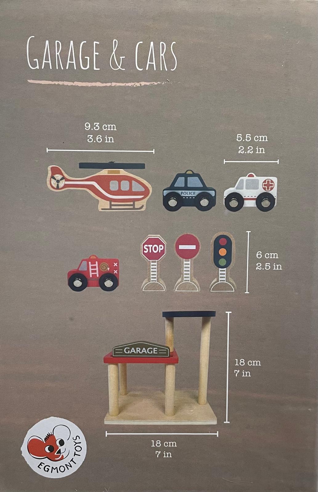 AE66 Egmont Toys Drewniany garaż z samochodami służby ratownicze straż policja karetka helikopter