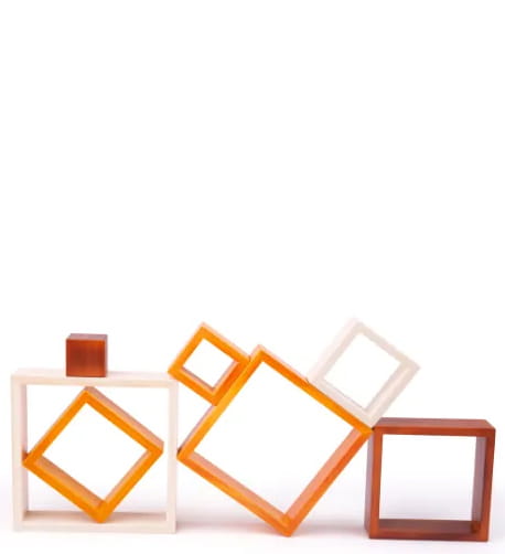 Ten uroczy zestaw kwadratów do układania jest wykonany z wysokiej jakości materiałów, które są barwione (a nie malowane) i pozostawiają naturalny drewniany efekt.