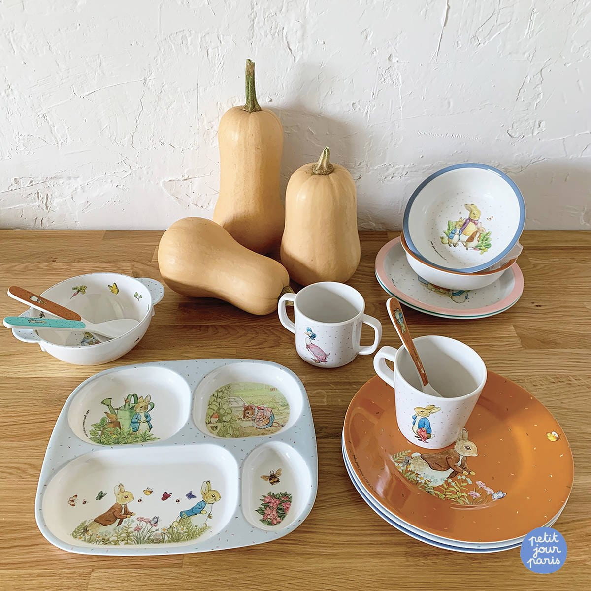 Petit Jour Paris od ponad 40 lat projektuje i dystrybuuje szeroką gamę akcesoriów dziecięcych z postaciami z literatury dziecięcej. Firma kieruje się tym by oferować rodzicom i dzieciom proste, designerskie, funkcjonalne i dostępne produkty. Petit Jour ma swojej kolekcji naczynia, które przeszły wszystkie rygorystyczne badania związane z dopuszczeniem ich do użytku dla dzieci. Są bez BPA, bez ftalanów, są wyprodukowane zgodnie z obowiązującymi, europejskimi normami bezpieczeństwa.