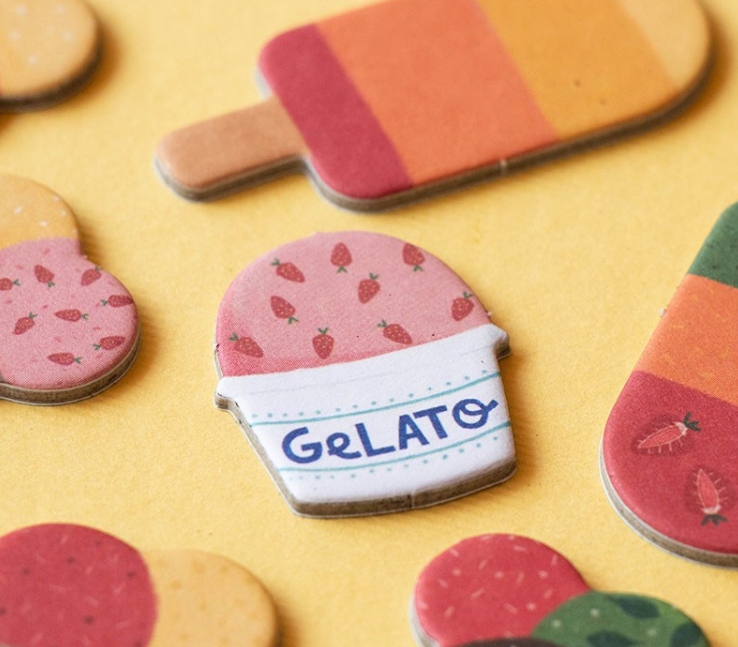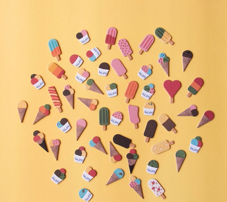 - Tematyka: lody, gelato, kolory, zabawa