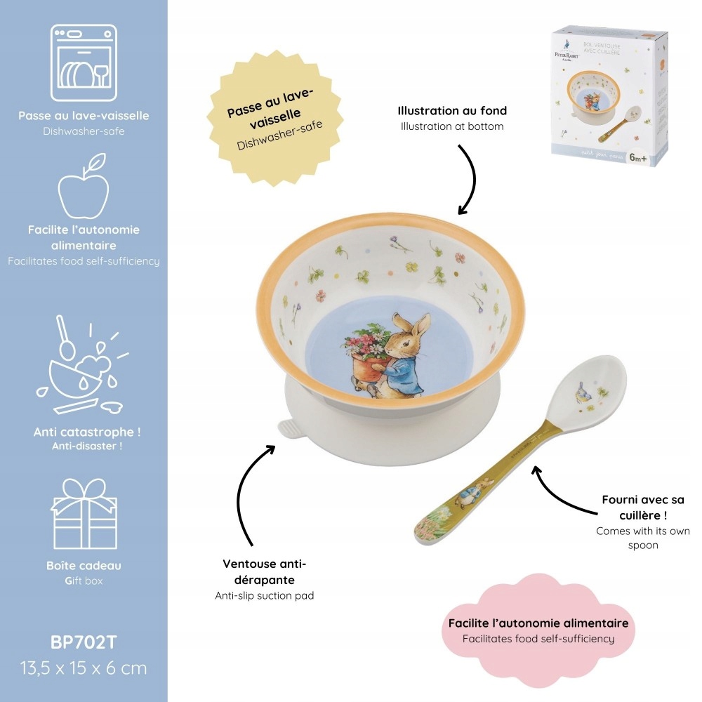 AL18 Miseczka, łyżeczka melamina Królik Piotruś PETIT JOUR PARIS