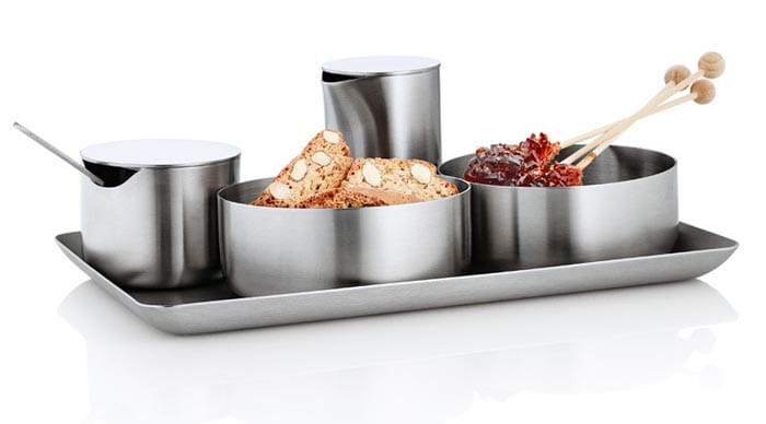 Kolekcja Basic Blomus, w której znajdziesz m. in. cukiernicę ma klasyczne kształty i doskonale współgra z wieloma typami zastawy stołowej.
