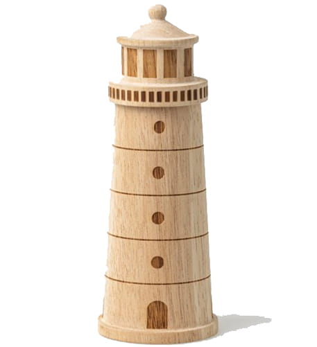 Oryginalny młynek ręczny w kształcie latarni morskich Rader. W ofercie marki znajduje się wiele przedmiotów wyposażenia wnętrz w tym kształcie, również w kategorii kuchennej, dlatego można skompletować ciekawy zestaw.
