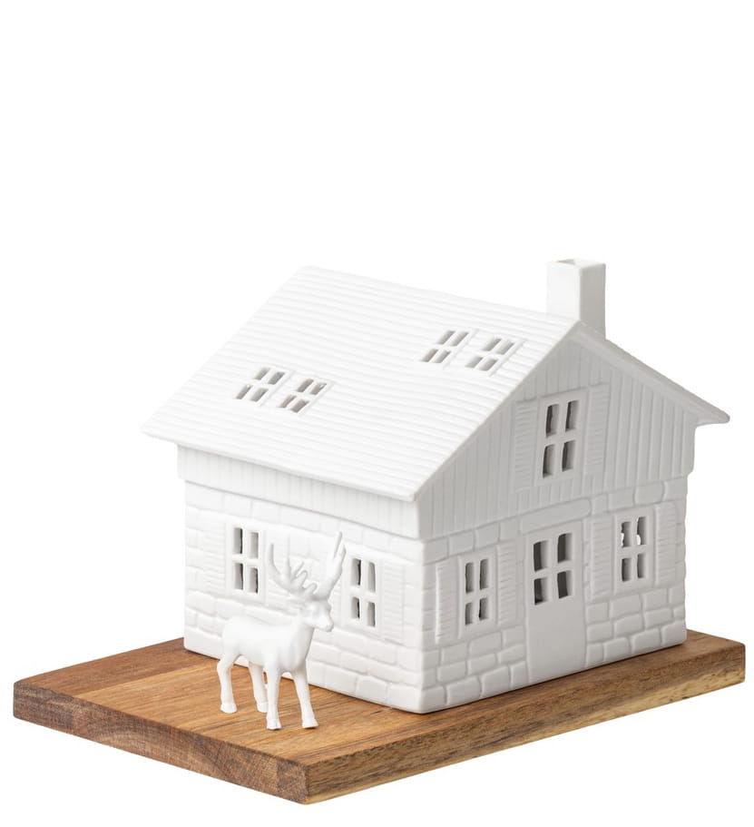 - W zestawie: drewniana podstawka, figurka jelenia, klosz-domek