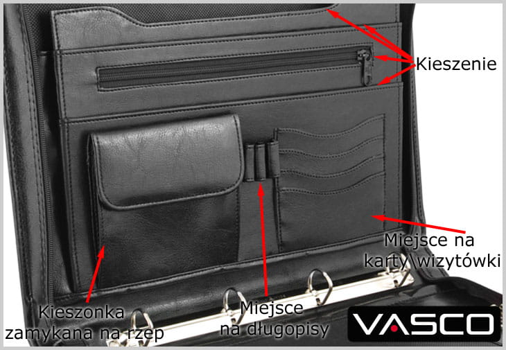 - przegródki na karty, wizytówki oraz długopisy.