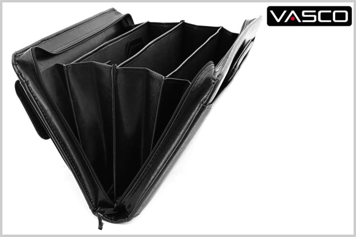 • Wnętrze składa się z czterech przegród na dokumenty (na jednej przegrodzie wbudowany jest organizer z miejscem na wizytówki, długopisy, telefon)