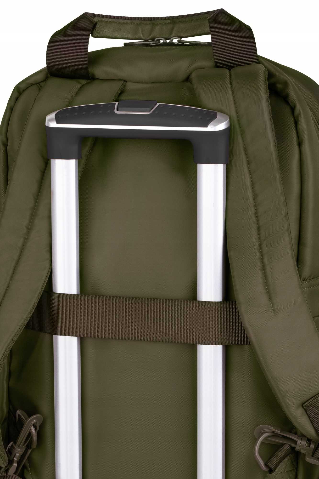 - możliwość przymocowania do rączki walizki- pas z tyłu plecaka;