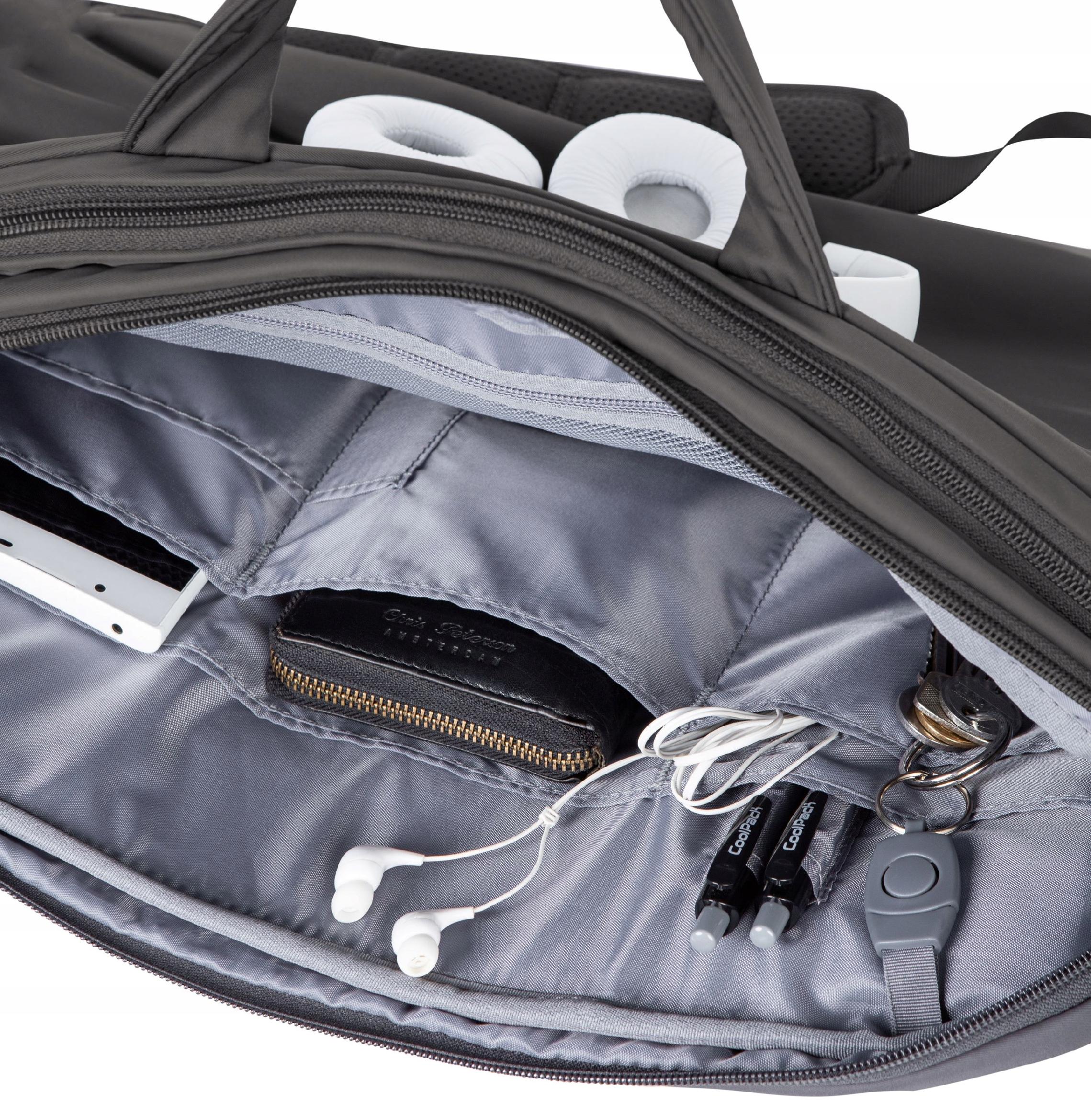 - wewnętrzna kieszeń zamykana na suwak, dodatkowe wyściełane kieszenie np. na słuchawki;