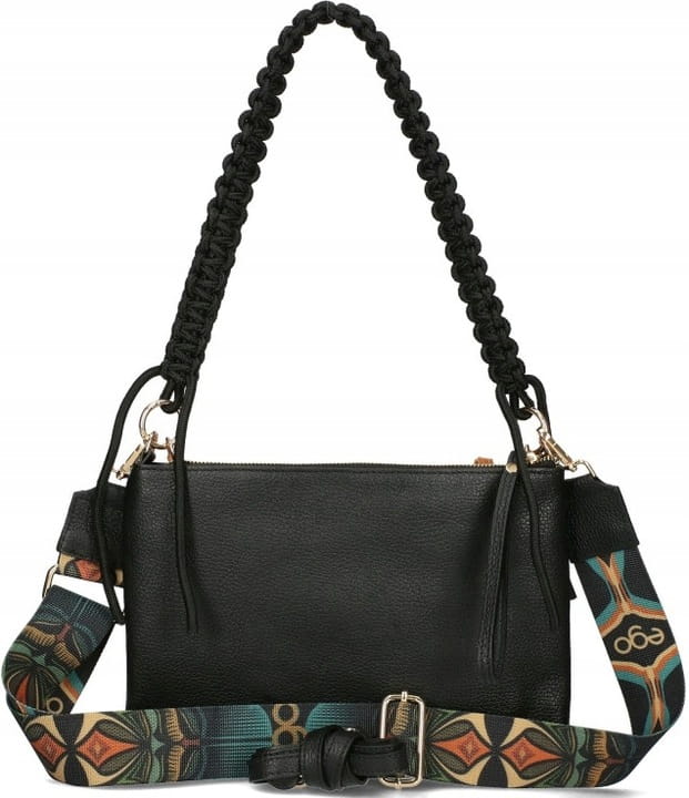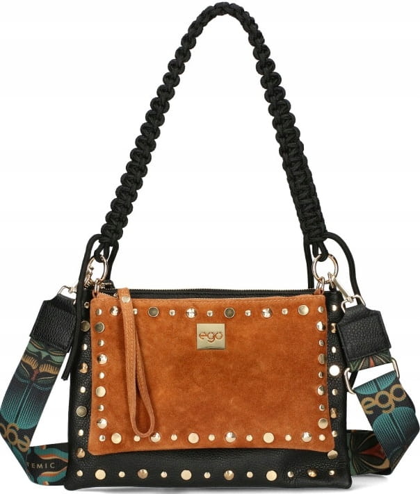 Stylowa torebka z najnowszej kolekcji EGO Totemic. Elegancka skórzana torebka ze skóry naturalnej łączonej z zamszową, zamykana jest na zamek błyskawiczny i posiada 2 komory oraz jedną zamykaną zameczkiem kieszonkę. Torebka jest złożona z 2 oddzielnych odpinanych komór .Torebka posiada 1 średniej długości pleciony uchwyt, skórzany wąski regulowany odpinany pasek oraz długi również odpinany szeroki pasek który pozwala przekształcić torebkę w elegancką listonoszkę. Bardzo elegancki średniej wielkości model torebki, do której zmieści się notatnik formatu A5, telefon, portfel i klucze.