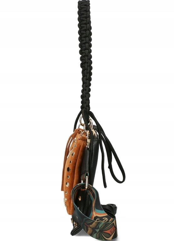 - 1 pleciony uchwyt, 1 wąski skórzany regulowany pasek na ramię oraz szeroki, długi, regulowany kolorowy pas.