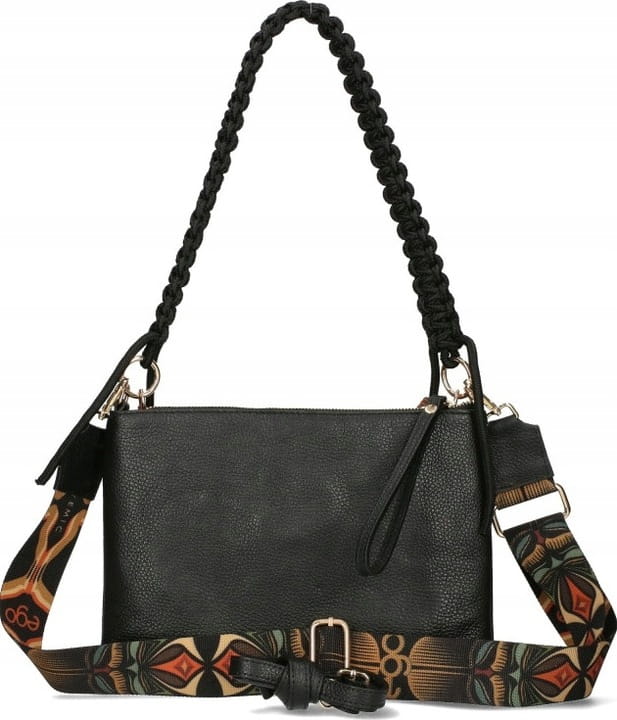 - 1 pleciony uchwyt, 1 wąski skórzany regulowany pasek na ramię oraz szeroki, długi, regulowany kolorowy pas.