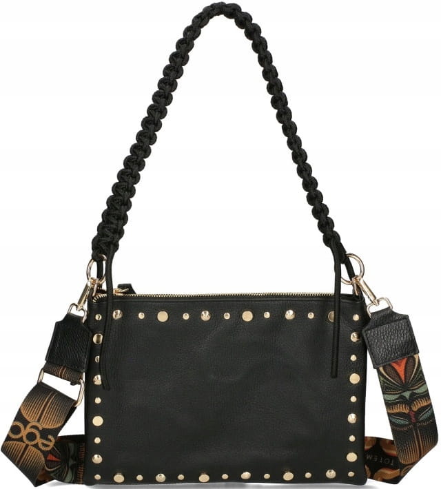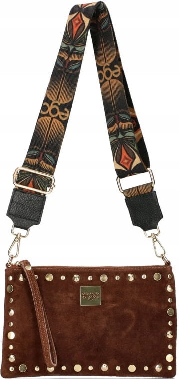 D05 torebka EGO Totemic listonoszka 3w1 grunge punk ćwieki szeroki pasek Dark Brown