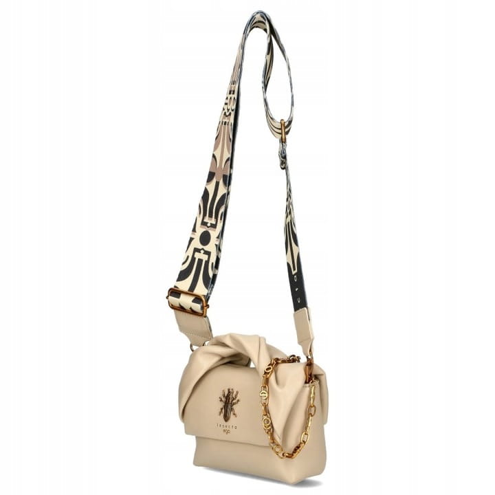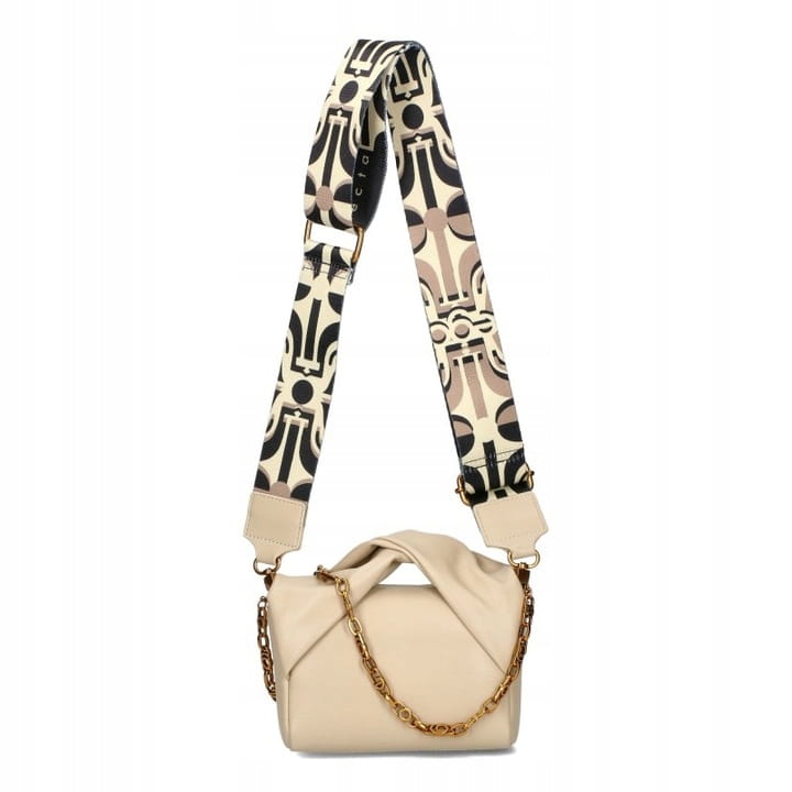 D08 mała torebka EGO Nira listonoszka ze zwiniętą rączka i szerokim paskiem Beige