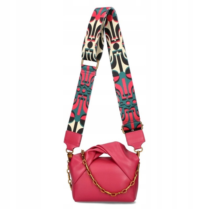 D08 mała torebka EGO Nira listonoszka ze zwiniętą rączka i szerokim paskiem róż