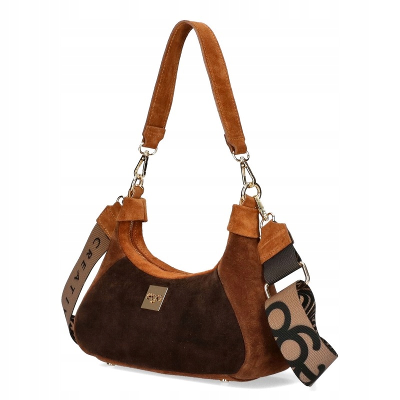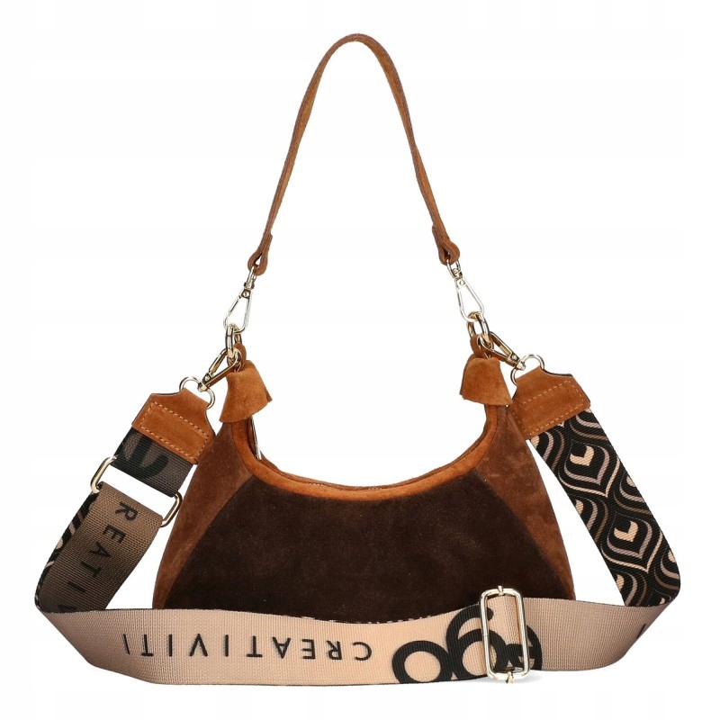Torebka EGO posiada dwa wymienne paski: szeroki, tkaninowy pasek printowany oraz klasyczny, krótki pasek na ramię, dzięki czemu w kilka chwil możesz zmienić jej charakter i dopasować ją do okazji. Zapięcie na zamek błyskawiczny zapewnia bezpieczeństwo przechowywanych rzeczy, a możliwość noszenia torebki zarówno na ramieniu, jak i crossbody czyni ją niezwykle praktyczną na co dzień. Model D106 to harmonijne połączenie elegancji, nowoczesnej formy oraz funkcjonalności – idealny dla kobiet, które cenią sobie styl i wygodę w jednym.
