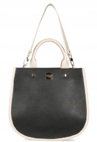 Elegancka skórzana torebka z najnowszej kolekcji EGO . elegancka torebka z uchwytami, skórzanym krótkim i tkaninowym szerokim paskiem.