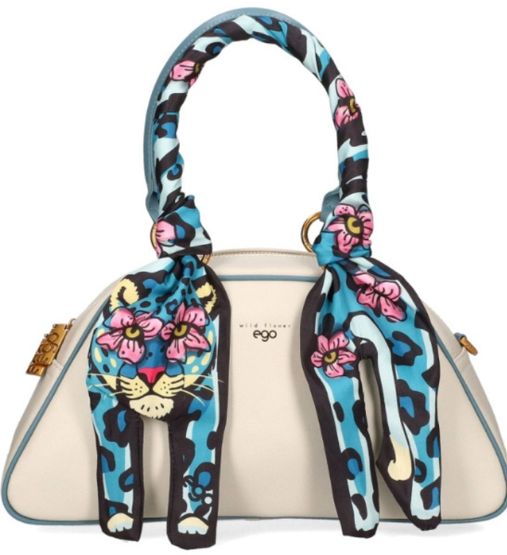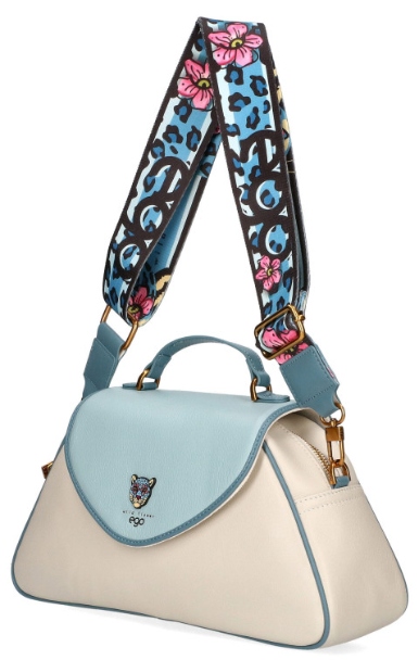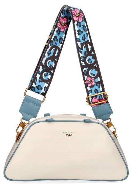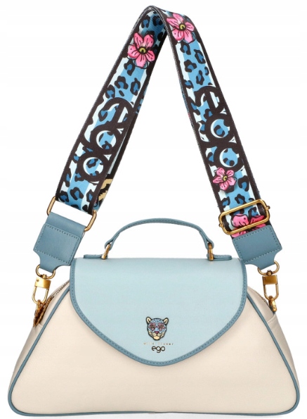 Elegancka skórzana torebka z najnowszej kolekcji EGO . elegancka torebka z uchwytami, skórzanym krótkim i tkaninowym szerokim paskiem.
